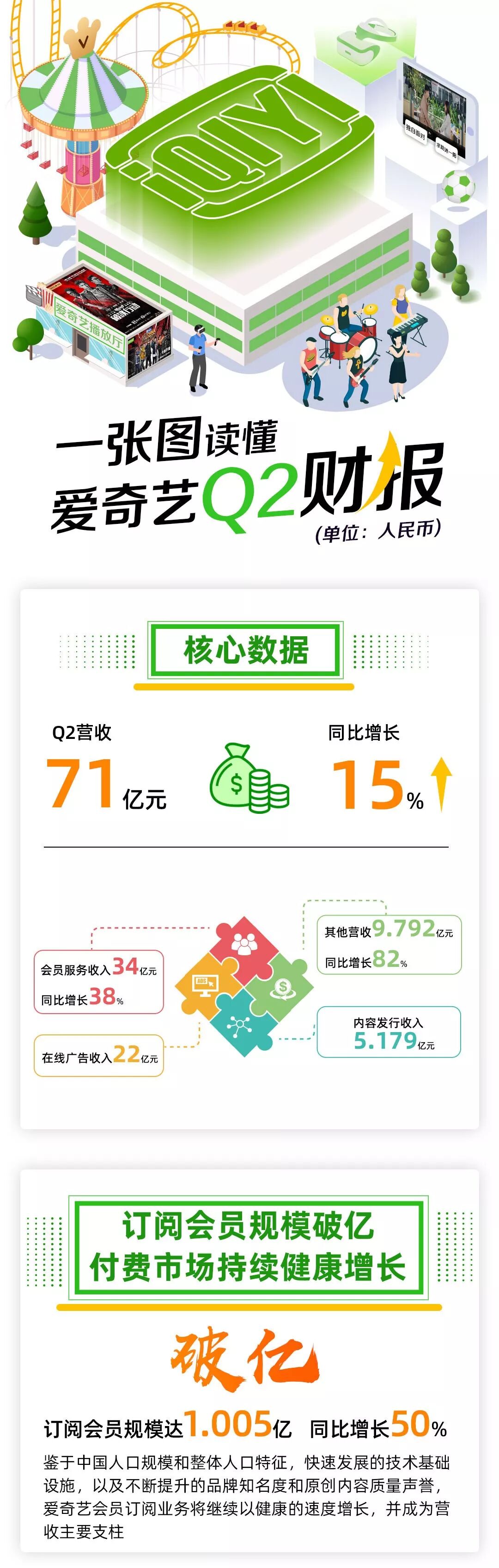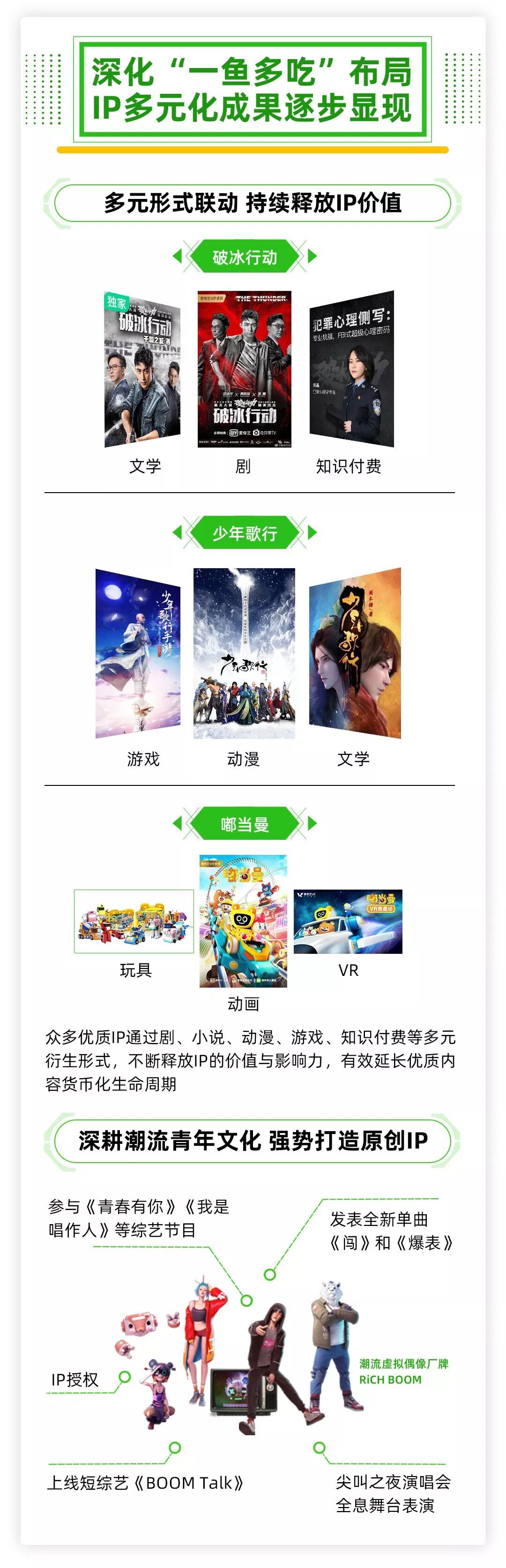 爱奇艺首席财务官王晓东表示:“尽管我们的行业近期面临一些挑战,但我们在第二季度仍实现了营收的持续增长,本季度优质内容的热烈反响带动会员业务的稳健增长,订阅会员营收同比增长38%。随着我们以IP为核心的多元化战略规模不断扩大,我们将持续拓展增值服务的范围并追求更好的货币化表现。我们相信公司长期增长的前景不变,并且我们会持续对原创内容和技术进行投入,这两者将成为推动我们未来增长的双引擎。”