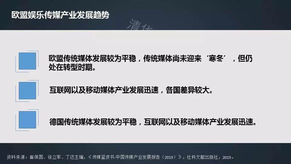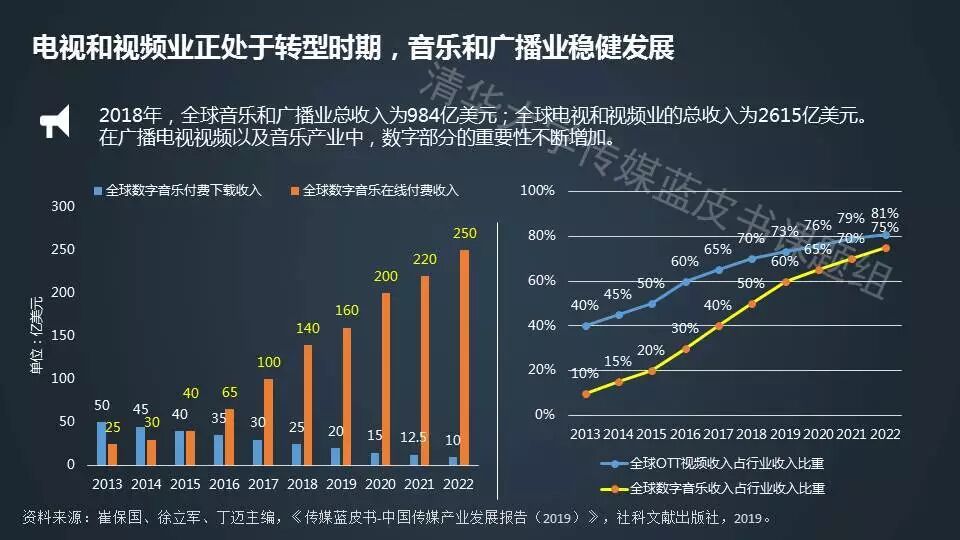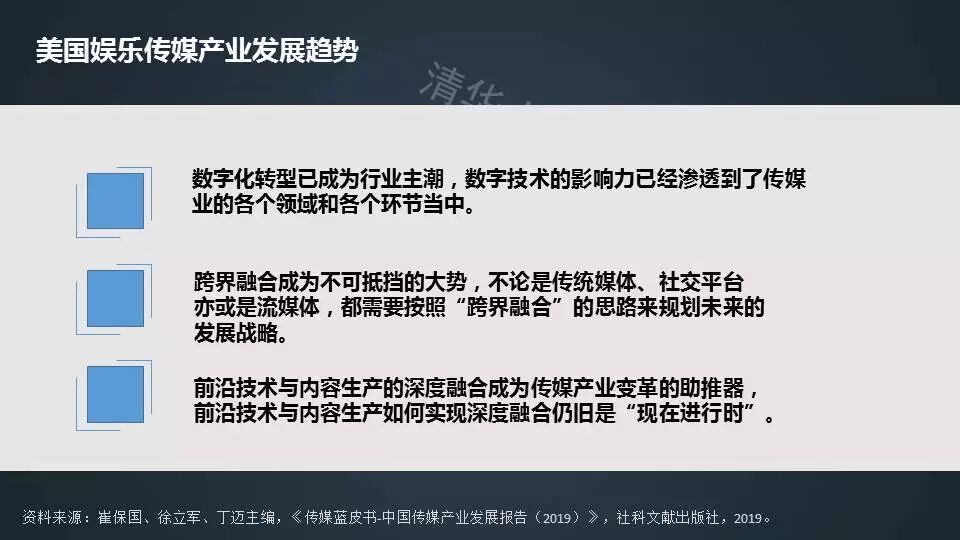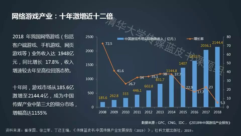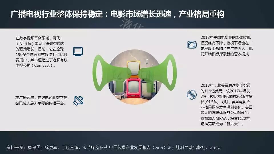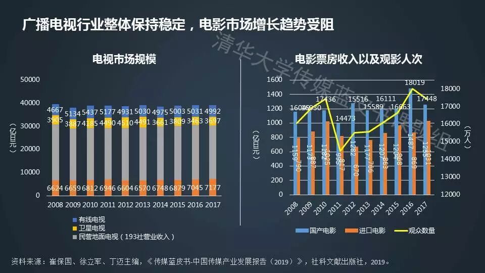 第二,中国传媒产业的发展速度稳中放缓,放缓的主要原因是受到宏观经济调整期的影响,也受到国家传媒政策改革和内容规制调整的影响;